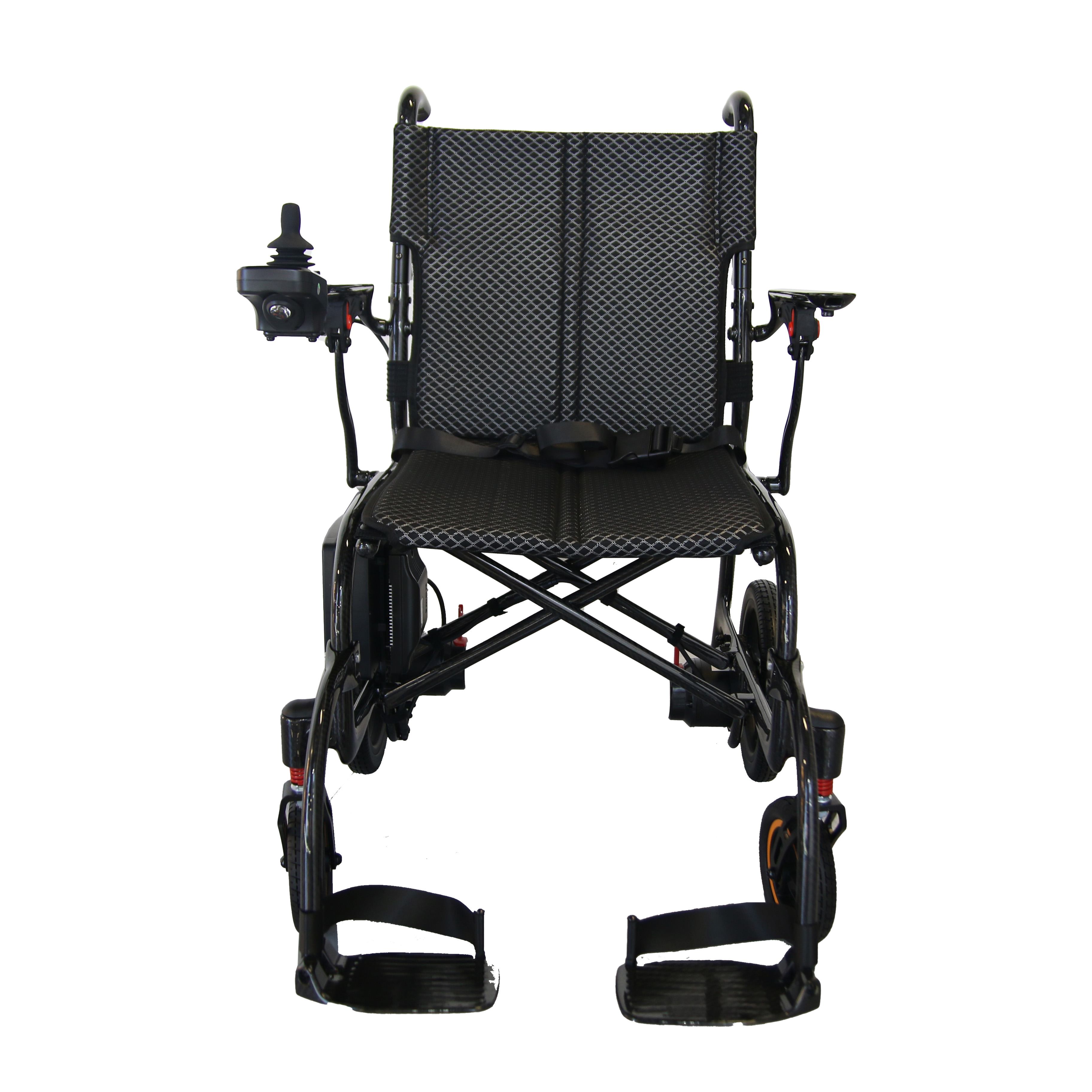 This machine features a one-piece 2mm thick high-strength carbon fiber body (lightweight, portable, corrosion/oxidation-resistant with natural carbon texture and glossy finish), foldable I-shaped frame, ergonomic seat/back cushions (high-strength nylon-mesh with canvas reinforcement, 5000N tensile, soft/breathable), rear-flipping armrests, quick-release footrests, magnesium alloy hub-PU tire wheels with shock absorption, 150W brushless motor with electromagnetic brakes (powerful, energy-efficient), and one-click electric-manual switching with speed display and low-battery braking for safety and convenience.