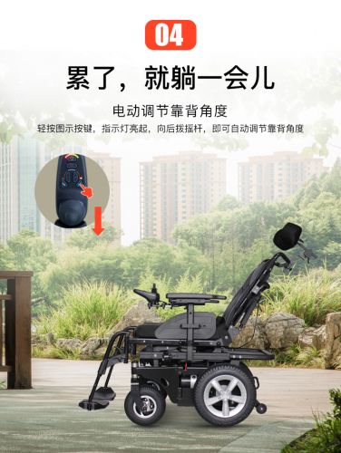 全功能減壓越野輪椅 靠背多角度調(diào)節(jié),車身可后仰,舒適減壓,有限預(yù)防褥瘡 LED前燈,酷炫后尾燈 標(biāo)配人機(jī)工程學(xué)頭枕,多處可調(diào)節(jié) 前后越野充氣輪胎,舒適減震 后置置物架,承重50公斤,可放制氧機(jī)等設(shè)備