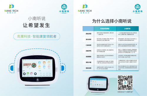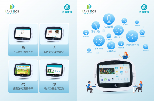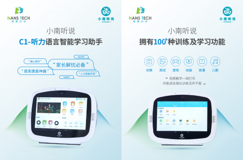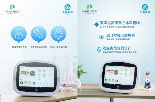小南聽說-聽力語言智能康復(fù)助手,是首款覆蓋家庭場景和機(jī)構(gòu)個(gè)訓(xùn)場景,面向患有聽力、言語語言障礙兒童及青少年的智能化康復(fù)訓(xùn)練設(shè)備。它具有功能強(qiáng)大、操作簡單、趣味性強(qiáng)、內(nèi)容豐富等特點(diǎn),是家長與康復(fù)老師的得力助手。該產(chǎn)品經(jīng)過國內(nèi)多家專業(yè)康復(fù)機(jī)構(gòu)驗(yàn)證,已成為很多老師的日常教學(xué)神器,還可作為早教機(jī)與智能學(xué)習(xí)機(jī)實(shí)現(xiàn)一機(jī)多用,滿足家長全方位的需求。該產(chǎn)品已于今年7月上市,現(xiàn)誠邀各地經(jīng)銷商垂詢合作。