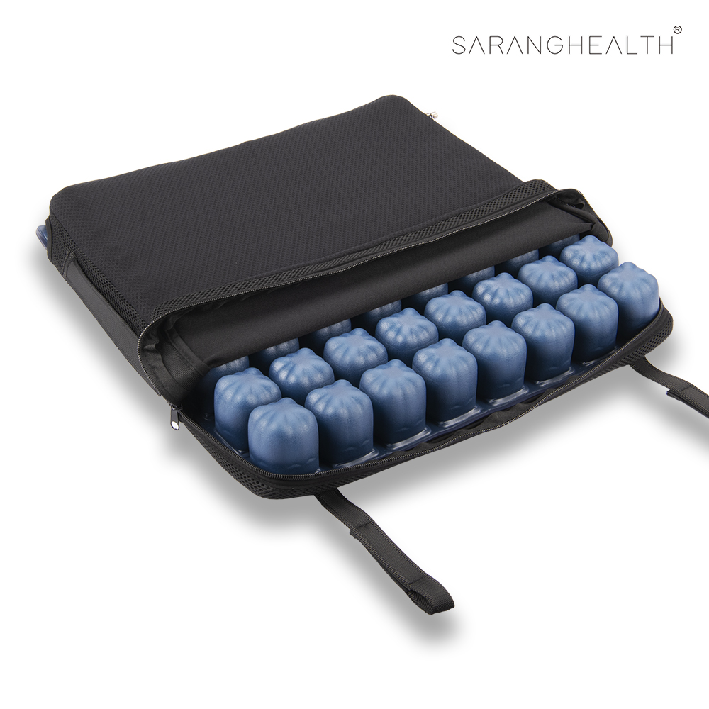 充氣防壓瘡墊選用無(wú)毒環(huán)保的PVC原料制成,散熱槽式分散結(jié)構(gòu)設(shè)計(jì),可減少熱量的積聚。根據(jù)人體臀部自然輪廓需求調(diào)節(jié)氣閥,幫助減輕坐骨、尾骨區(qū)域肌肉及血管所受到的壓力,使血液得到充分循環(huán),最大限度地降低和減少剪切力和摩擦力,適合長(zhǎng)期坐輪椅的人士使用,有效預(yù)防肌肉組織壓瘡損傷的發(fā)生。
