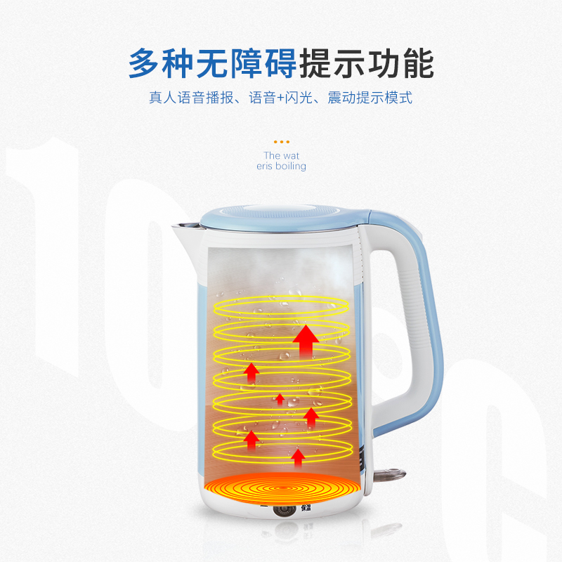 產(chǎn)品具有全程可語音、閃光、震動(dòng)提示;產(chǎn)品具有防干燒斷電保護(hù)功能,具有保溫功能。