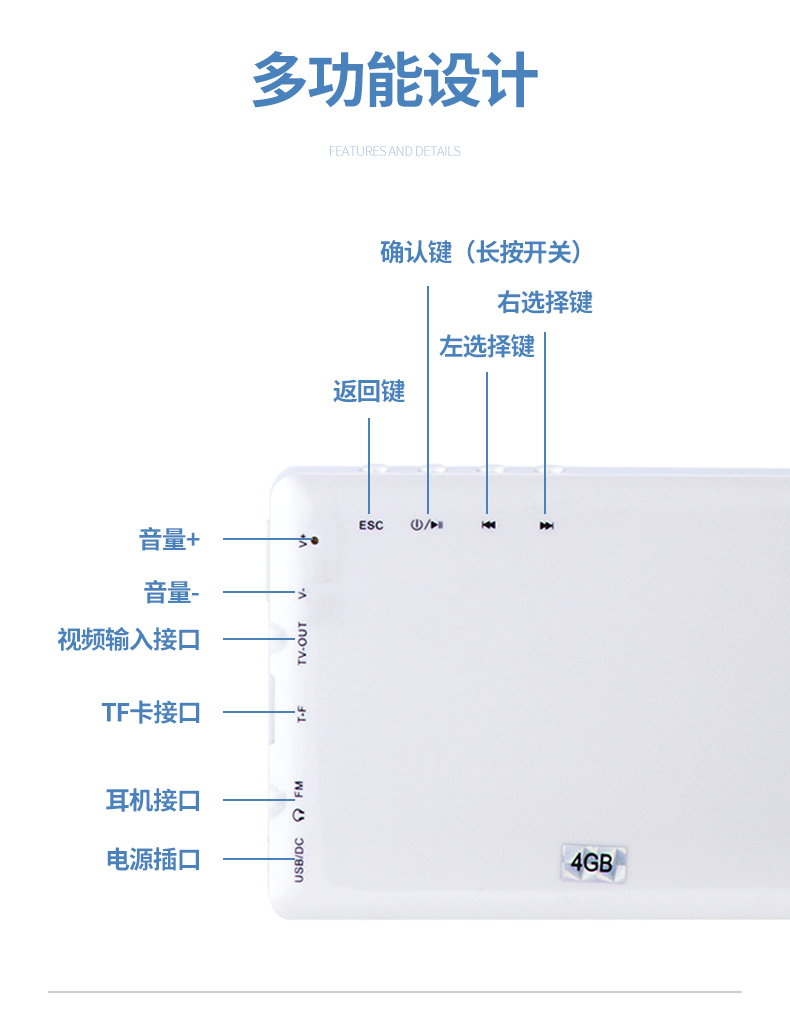 屏幕尺寸≥4.2寸;每一步操作都可以實現(xiàn)步步語音提示;具有視頻/音頻/收音機/電子書功能。