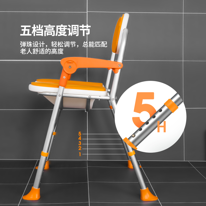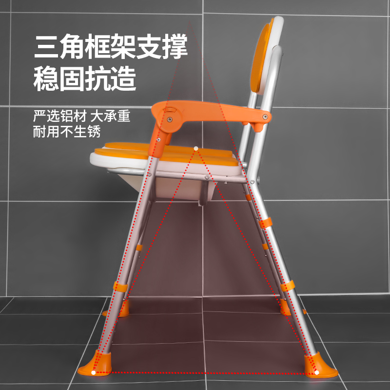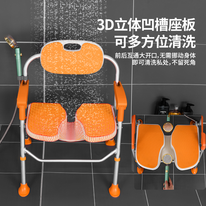 一鍵折疊洗澡椅,3D凹槽設(shè)計(jì),方便清洗下身,鋁合金主架防水防銹