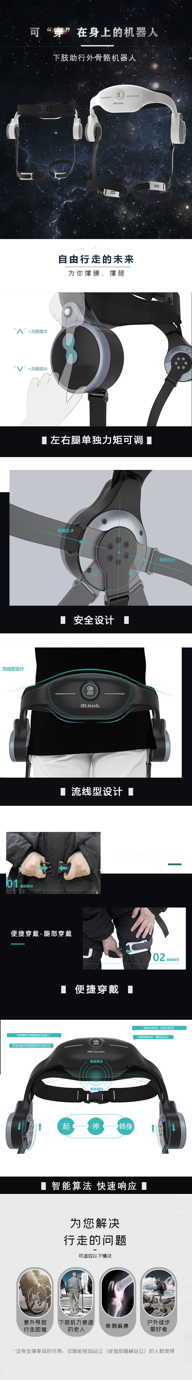 專門針對(duì)腿腳乏力老人、中風(fēng)偏癱患者、步態(tài)異常人群提供的一款助行設(shè)備,產(chǎn)品采用人工智能算法,能夠主動(dòng)響應(yīng)患者下肢的起、停、擺等不同動(dòng)作;采用智能力矩的輸出方式,可以根據(jù)患者腿腳乏力程度,給予不同力矩的助力,能夠滿足平地走路、爬山上坡、跑步鍛煉等不同場(chǎng)景需求。產(chǎn)品整體按照人機(jī)工程學(xué)原理進(jìn)行設(shè)計(jì),能夠滿足不同人群的穿戴要求,穿戴簡(jiǎn)單、操作方便;整機(jī)采用鋁合金、碳纖維、ABS等材質(zhì),輕便、耐用。