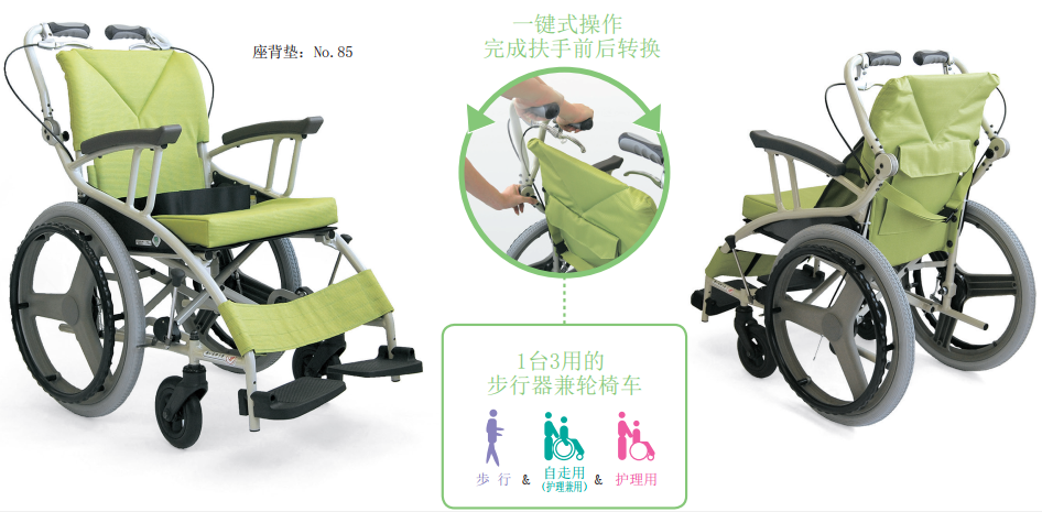 一臺三用的步行器兼輪椅車,外觀時尚,三種使用方式,可作為步行器使用的輪椅,外出時的強(qiáng)力支撐。