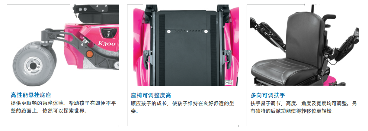 【功能】: 電動(dòng)前進(jìn)、后退、座椅抬升、座椅空中傾倒 【用途】: 本品供行動(dòng)有困難的兒童或身材矮小的成年人使用,輔助用戶實(shí)現(xiàn)部分的行動(dòng)功能。 【原理】: 輪椅由底盤、座椅和控制面板組成。底盤包括輪椅的電子裝置、前輪(驅(qū)動(dòng)輪)、后輪和支撐輪。座椅包括靠座架、座板和靠背、扶手、擱腳和踏板、座椅升降裝置。本品通過(guò)電池電力驅(qū)動(dòng),用戶可以通過(guò)控制面板(控制器)控制電動(dòng)輪椅車的前進(jìn)、后退、抬升、空中傾倒等。