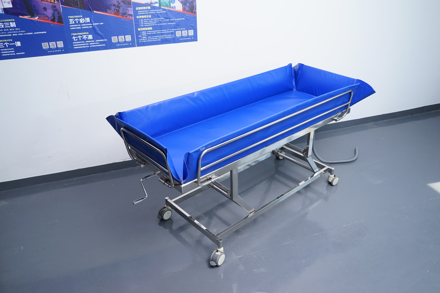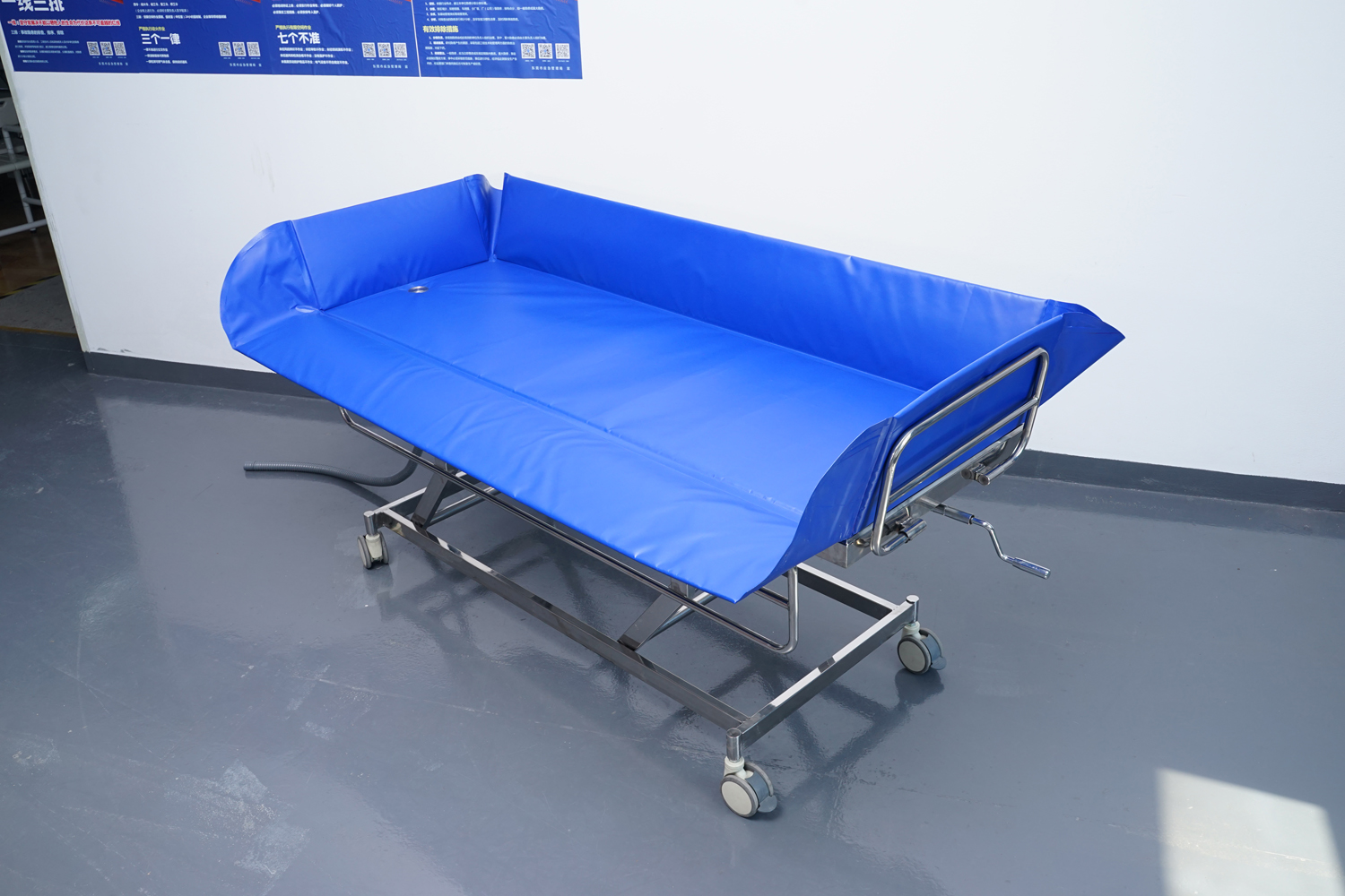 一、產(chǎn)品特點(diǎn): 手搖式沐浴推床是東莞愛樂公司專為臥床/癱瘓等行動(dòng)不方便的老年人、殘疾人、醫(yī)患病人設(shè)計(jì)的一款沐浴床。科學(xué)地解決了長(zhǎng)期臥床人士對(duì)洗浴的無傷害要求,最大程度地減輕了護(hù)理強(qiáng)度,提高工作西效率;強(qiáng)大的技術(shù)支持和細(xì)節(jié)外的人性化設(shè)計(jì),完全滿足了不同情況的老人要求。手搖式整體升降,隨意調(diào)節(jié)高度,床體四周床欄皆可180°旋轉(zhuǎn),直接由病床轉(zhuǎn)移病人前往沐??;
