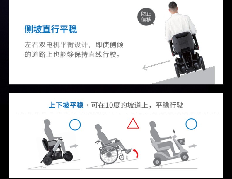 Whill(蔚爾)的使命,為所有人的出行帶來(lái)創(chuàng)新和快樂(lè)。2009年誕生第一款概念機(jī),2012年WHILL公司在日本建立,經(jīng)過(guò)12年,如今有了MODEL F和C2兩款智能代步車(chē)。MODEL C2在2019年全球同步發(fā)售,上市后獲得無(wú)數(shù)大獎(jiǎng)。配有日本尼得科無(wú)刷雙電機(jī),動(dòng)力強(qiáng)勁輸出穩(wěn)定。前輪與馬自達(dá)汽車(chē)公司開(kāi)發(fā)的特殊專利Omni輪(萬(wàn)向輪胎),實(shí)現(xiàn)原地76厘米半徑轉(zhuǎn)。彎。