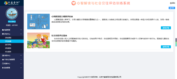 管理端可以通過心智解讀能力觀察評估表、社交技能評定量表等專業(yè)評估工具,直觀便捷檢測學(xué)生現(xiàn)有的心智解讀和社交技能發(fā)展水平,評定訓(xùn)練成效;可以創(chuàng)建屬于個體的個性化訓(xùn)練方案,包括制定訓(xùn)練的長期目標(biāo)、短期目標(biāo)、訓(xùn)練計劃、執(zhí)行訓(xùn)練任務(wù);提供相關(guān)維度的豐富資源,提供現(xiàn)有的研究成果、教案等,拓展訓(xùn)練老師和家長在相關(guān)領(lǐng)域的認知。 學(xué)生端訓(xùn)練涵蓋共同注意、情緒解讀等七大維度,配置了視線交替、愿望等訓(xùn)練游戲