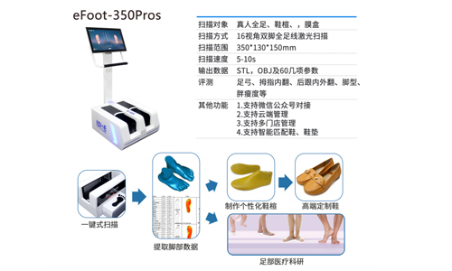 腳型3D掃描儀(雙腳)可對(duì)人體腳型,鞋楦楦型進(jìn)行三維掃描,采集高精度腳型和楦型3D數(shù)據(jù),并生成60幾組個(gè)性化測(cè)量參數(shù),支持上傳與下載,廣泛用于制鞋產(chǎn)業(yè)與醫(yī)療康復(fù)領(lǐng)域.