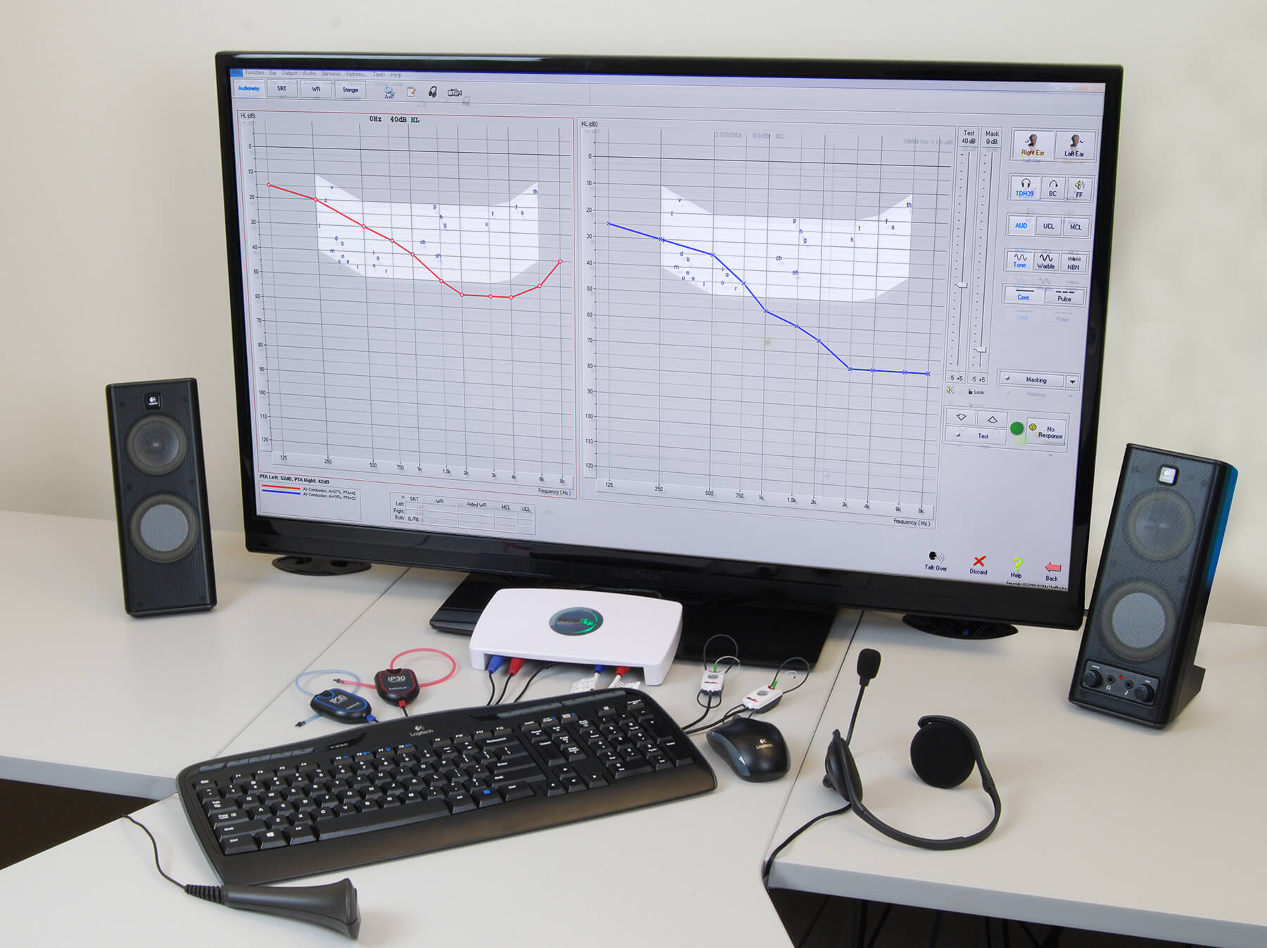 • 完整的測聽功能; • 雙耳的真耳分析和實時言語圖譜; • 可自由添加耳鳴評估測試模塊; • 內(nèi)置強(qiáng)大的第三方咨詢工具; • 內(nèi)置閾上聽功能測試、中英文言語詞表和自動評分功能; • 基于PC操作,小巧便攜,主機(jī)約 20 cm x 12 cm x 3 cm; • 通過 USB 與計算機(jī)連接; • 與主流數(shù)據(jù)庫NOAH™, TIMS® 和 Sycle.Net™ 相兼容。