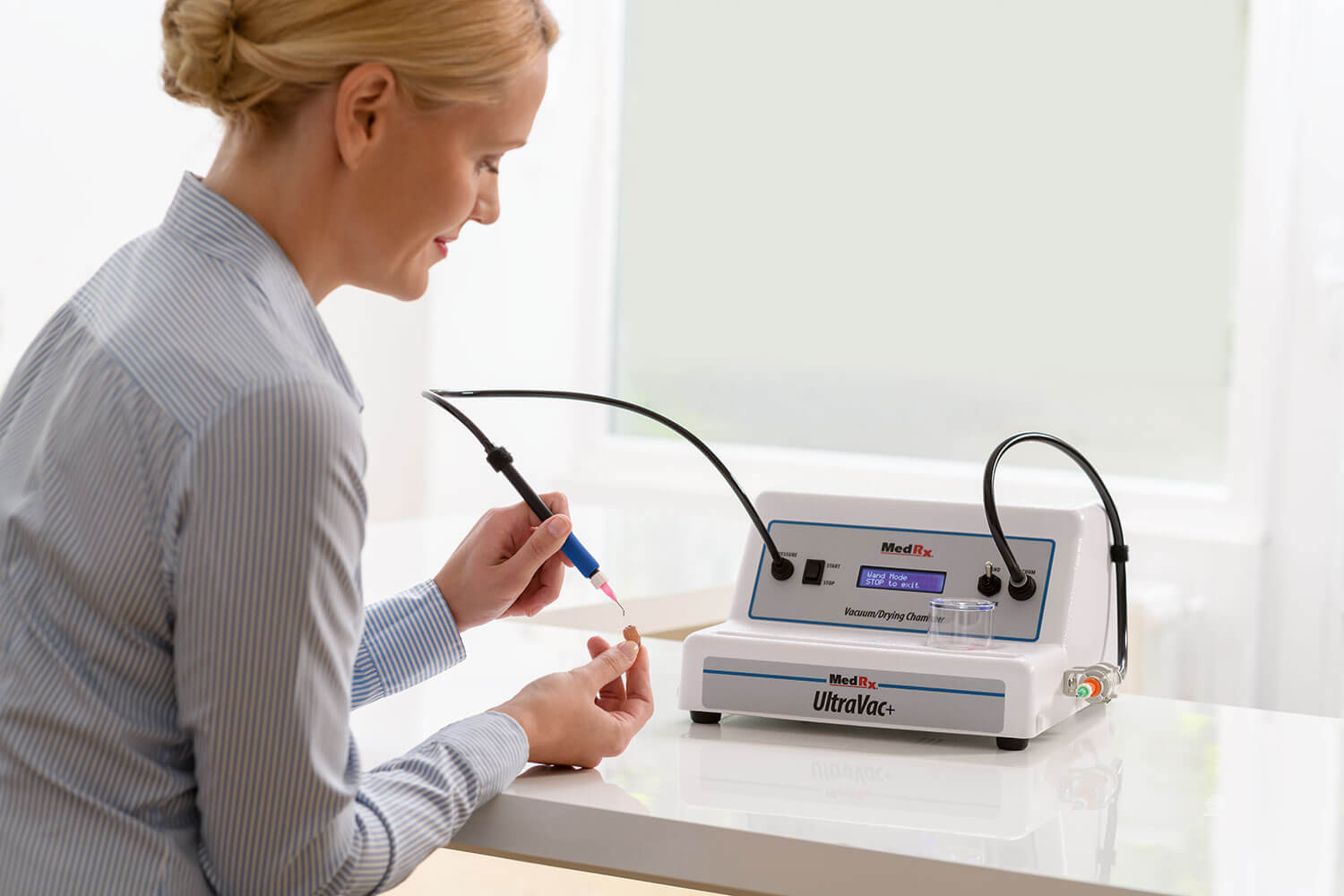 全新升級的UltraVac+助聽器保養(yǎng)儀專為呵護(hù)助聽器而生,外形更加簡潔美觀,除塵和干燥兩大功能獨(dú)立工作。除塵功能分吸塵與除塵兩個(gè)手柄,經(jīng)過嚴(yán)格計(jì)算的風(fēng)力在確保清潔功能的同時(shí),還能避免損壞助聽器的元器件。干燥功能通過真空進(jìn)行干燥,4分鐘快速干燥,并且在干燥結(jié)束時(shí)為避免泄壓過快損傷助聽器,專門進(jìn)行了緩慢泄壓的設(shè)計(jì)。設(shè)計(jì)的細(xì)節(jié)均為延長助聽器使用壽命,是您做助聽器保養(yǎng)工作的一位優(yōu)秀搭檔。