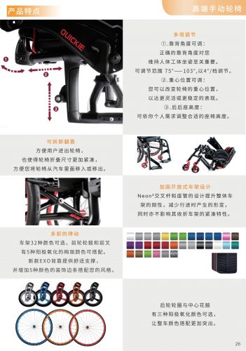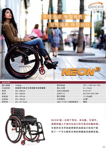 Neon2 是一臺將個(gè)性化、多功能可調(diào)節(jié)、便攜性融入于現(xiàn)代化設(shè)計(jì)的開放式折疊輪椅,車架的交叉桿和座椅管的加固設(shè)計(jì)給用戶提供了一個(gè)可與剛性車架輪椅媲美的騎乘性能。