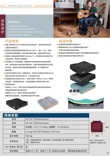 JAY Union是一種多用途的,舒適的,皮膚保護和擺位輪椅座墊,由液態(tài)凝膠和泡棉分層組合,配置防水內(nèi)襯布套,清洗方便。