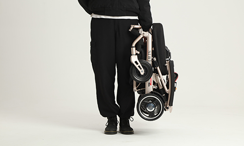 超輕便電動(dòng)輪椅,輕松折疊,靠背可后躺,重約19.8kg,折疊后可輕松放入后備箱;可上飛機(jī)無(wú)憂出行