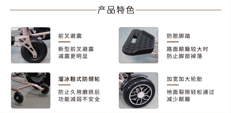 1、航空鋁合金車身,加寬輪胎,輕便又穩(wěn)固 2、全新黑科技減震設(shè)計(jì):前叉減震+大彈簧減震 3、坐姿兩檔可調(diào),有效緩解臀部壓力 4、輕松折疊,可放后備箱,可上飛機(jī)(12Ah鋰電) 5、控制器可下翻,防止搬運(yùn)觸碰 6、500瓦無刷免維護(hù)電機(jī),動(dòng)力充沛 7、液晶屏顯,高端智能,柔和起步,智能降速 8、可選配無線遙控器,遠(yuǎn)程遙控