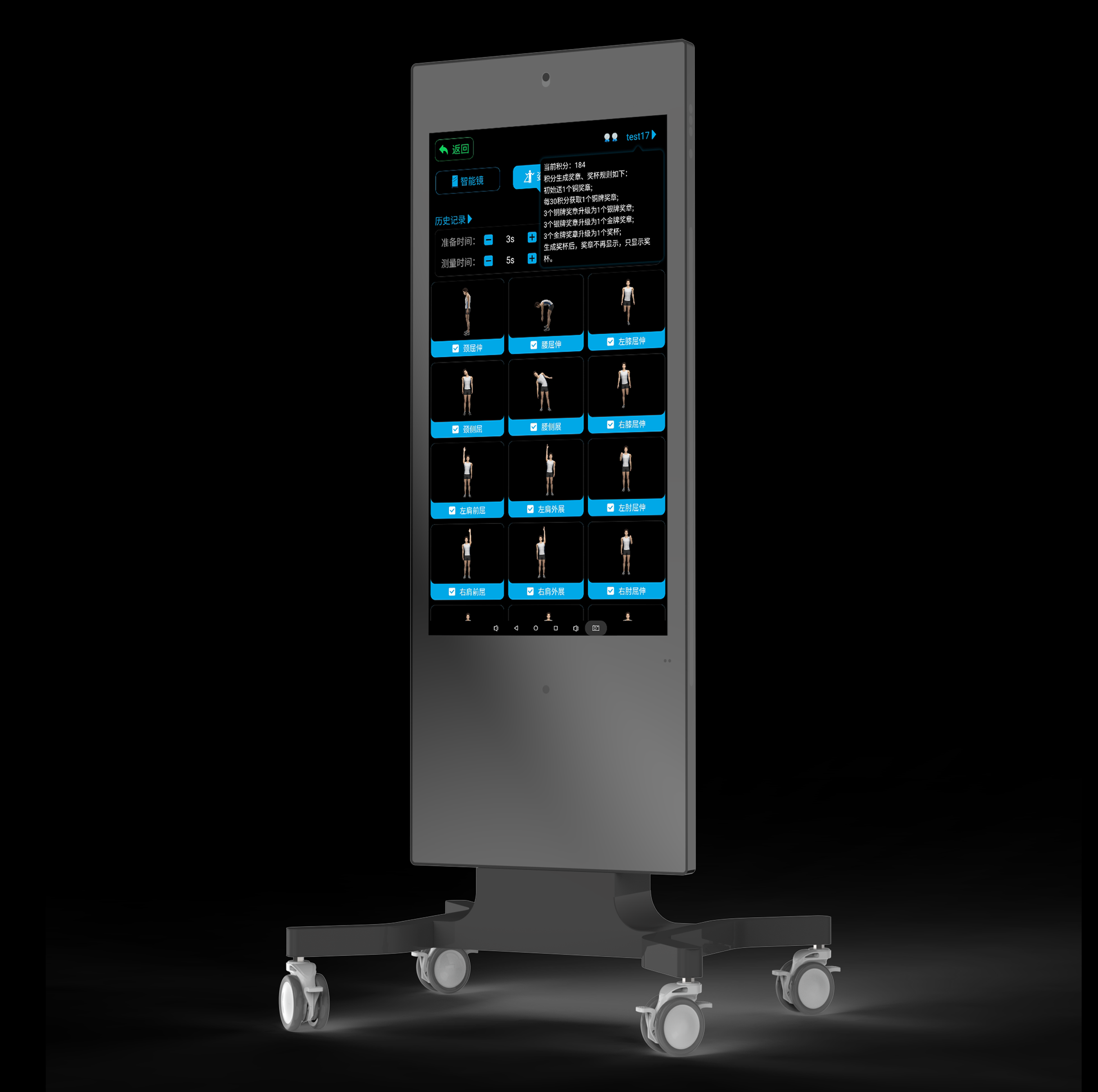 智能矯正鏡,使用自研AI算法,智能分析人體關(guān)鍵點數(shù)據(jù),進行精準(zhǔn)展示及評估。機器視覺處理,無需佩戴其他裝置,即時采集人體數(shù)據(jù)可進行關(guān)節(jié)活動類 評估、體態(tài)姿勢分析、運動過程監(jiān)測和體質(zhì)健康測量,助力傳統(tǒng)設(shè)備提檔升級, 讓治療訓(xùn)練有據(jù)可循,量表統(tǒng)計直觀可見,增強康復(fù)意愿。