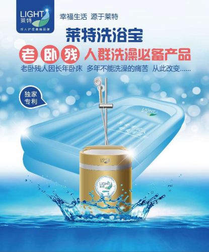 洗浴寶:專為老、臥、殘、孕人群設(shè)計(jì),改變傳統(tǒng)擦洗模式,感受淋浴帶來的舒適。 安全:洗澡機(jī)內(nèi)部裝有蓄電池功能,可斷電使用。 方便:不用移動使用者,在自己睡覺的床上解決洗澡。洗澡床可折疊,占地小,一個人就可以操作。 衛(wèi)生:用流動的水洗澡,洗頭、洗臀不會二次污染。 成本:每天只需1度電,徹底清潔全身。 專利證書產(chǎn)品,國家級檢測報(bào)告,CE認(rèn)證,獲得2018中國國際福祉博覽會誒加創(chuàng)新產(chǎn)品銀獎