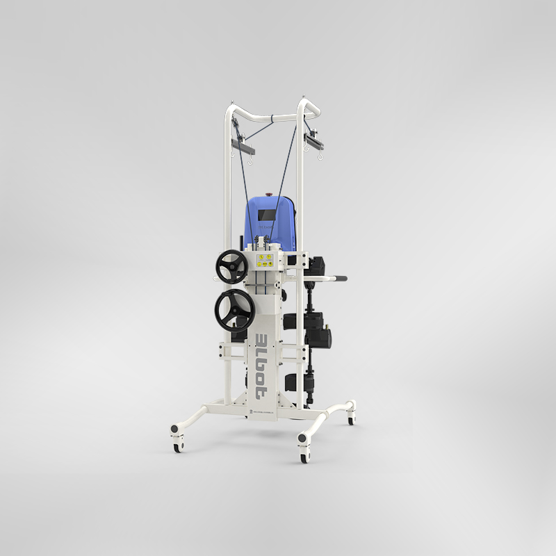 主要是針對(duì)中風(fēng)偏癱患者、骨科術(shù)后患者進(jìn)行下肢康復(fù)訓(xùn)練。產(chǎn)品首先采用的仿人體直立狀態(tài)進(jìn)行下肢康復(fù)訓(xùn)練,改變了初期傳統(tǒng)的臥床人工康復(fù);整體采用人工智能、被動(dòng)康復(fù)訓(xùn)練的模式,整個(gè)設(shè)備左右腿、髖關(guān)節(jié)、膝關(guān)節(jié)都可以根據(jù)患者情況單獨(dú)進(jìn)行設(shè)置,步幅步頻、康復(fù)訓(xùn)練時(shí)間都可以結(jié)合醫(yī)師指導(dǎo)意見(jiàn)進(jìn)行設(shè)置,而且康復(fù)數(shù)據(jù)可以記錄并從后臺(tái)傳給醫(yī)生,更好的指導(dǎo)康復(fù)訓(xùn)練或研究。另外整體采用吊裝減重設(shè)計(jì),滿足不同康復(fù)階段的負(fù)重要求