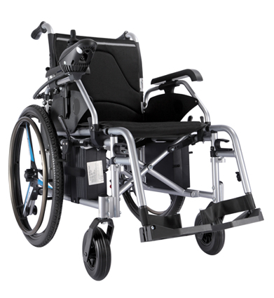 主體車架采用加厚鋁合金材質,進口大功率渦輪蝸桿電機動力強勁,扶手可后翻并可根據使用者的要求調節(jié)高矮,后輪24寸免充氣PU輪胎,減震效果好,可拆卸的腿部支架折疊后體積更為小巧,雙層透氣靠背坐墊精美舒適,大容量鋰電池讓您出行無憂。