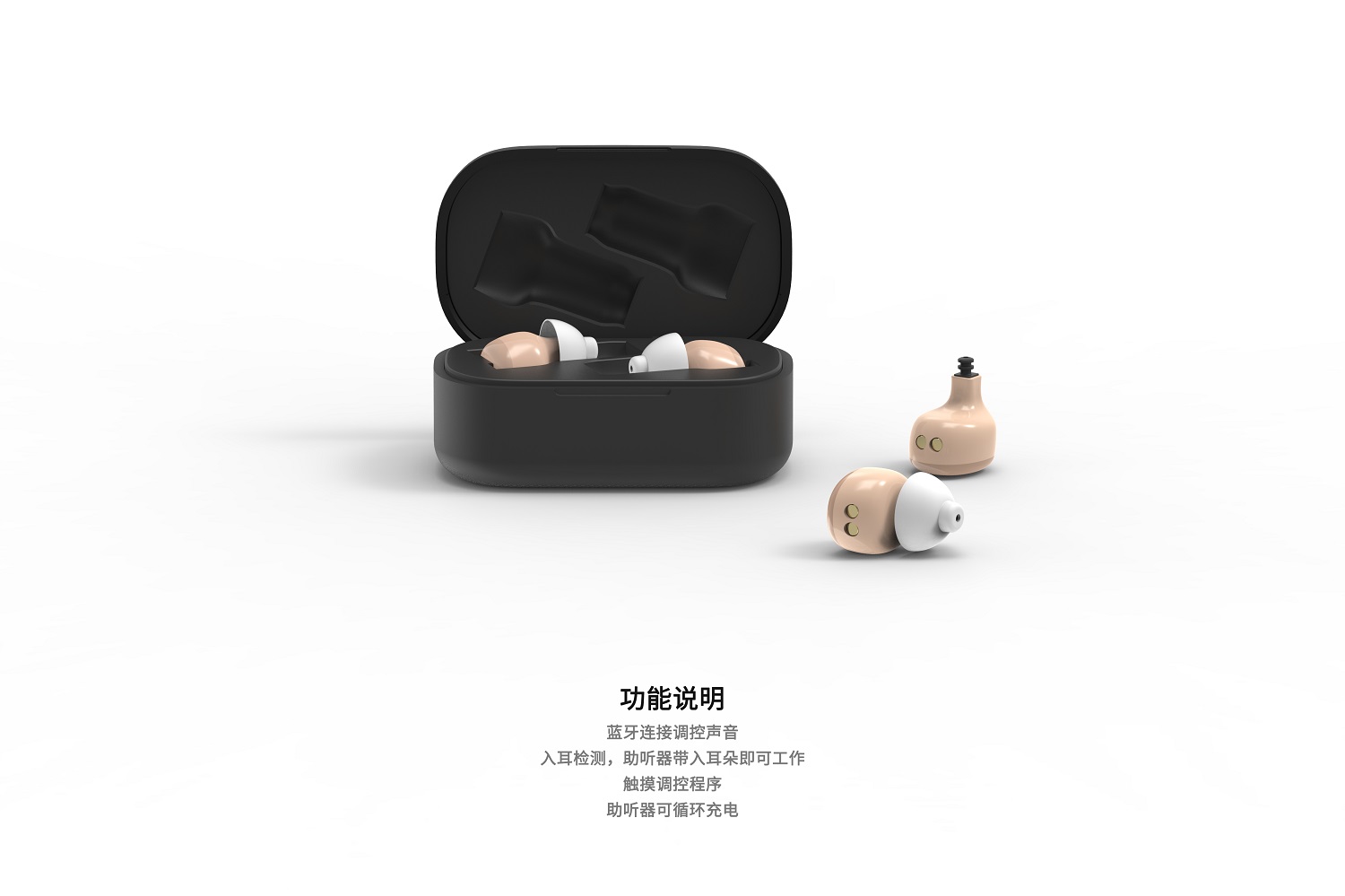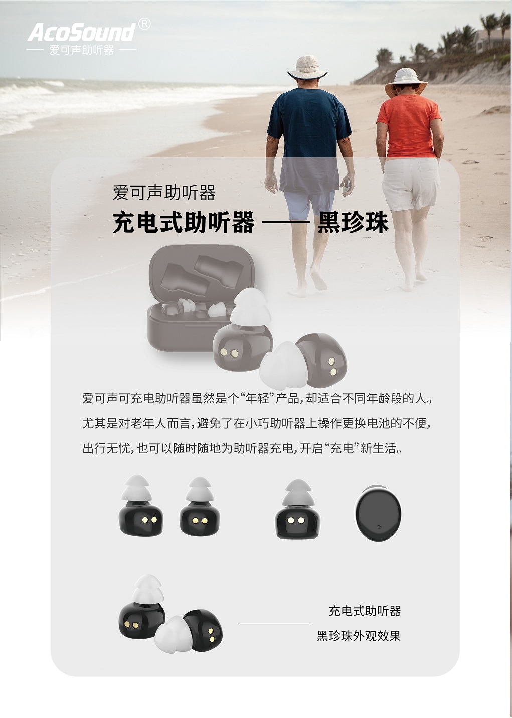 獨特設計和外觀:彰顯個性 AcoSense入耳檢測:佩戴時快速啟動、入耳時不嘯叫 AcoCharge向“續(xù)航焦慮”說不:一次充電保障30小時聆聽,配合充電盒可達90小時。 AcoTouch觸摸感應:只需輕觸即可完成助聽器程序切換與音量控制。
