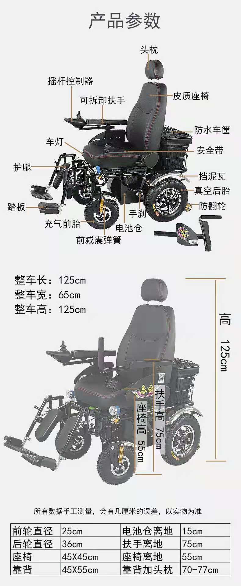 雙減速齒輪電機(jī)驅(qū)動,噪音低,動力強(qiáng)勁;大直徑充氣前輪,后輪鋁合金真空輪胎,兼具轉(zhuǎn)向靈活和超強(qiáng)越野性能;加厚豪華坐墊,透氣舒適;前后一體減震 減震性能卓越 電磁剎車斷電剎車系統(tǒng)。適應(yīng)人群 意識較差、行動不便,單手有正常的抓握能力(左右手均可),活動范圍較小的用戶,尤其適合偏癱病人。適合室內(nèi)或者室外平坦或者較差硬化路面使用,可爬大坡。