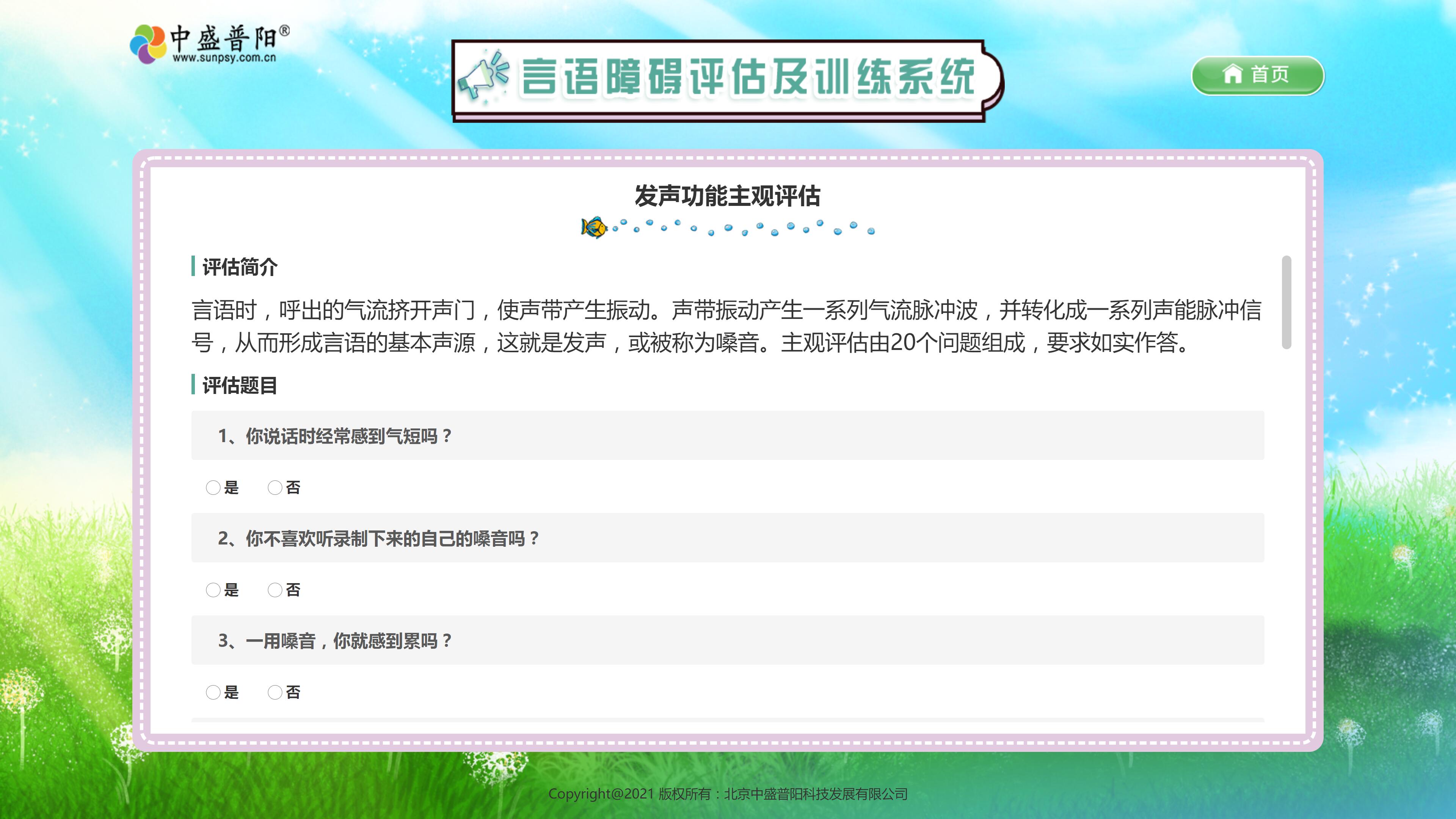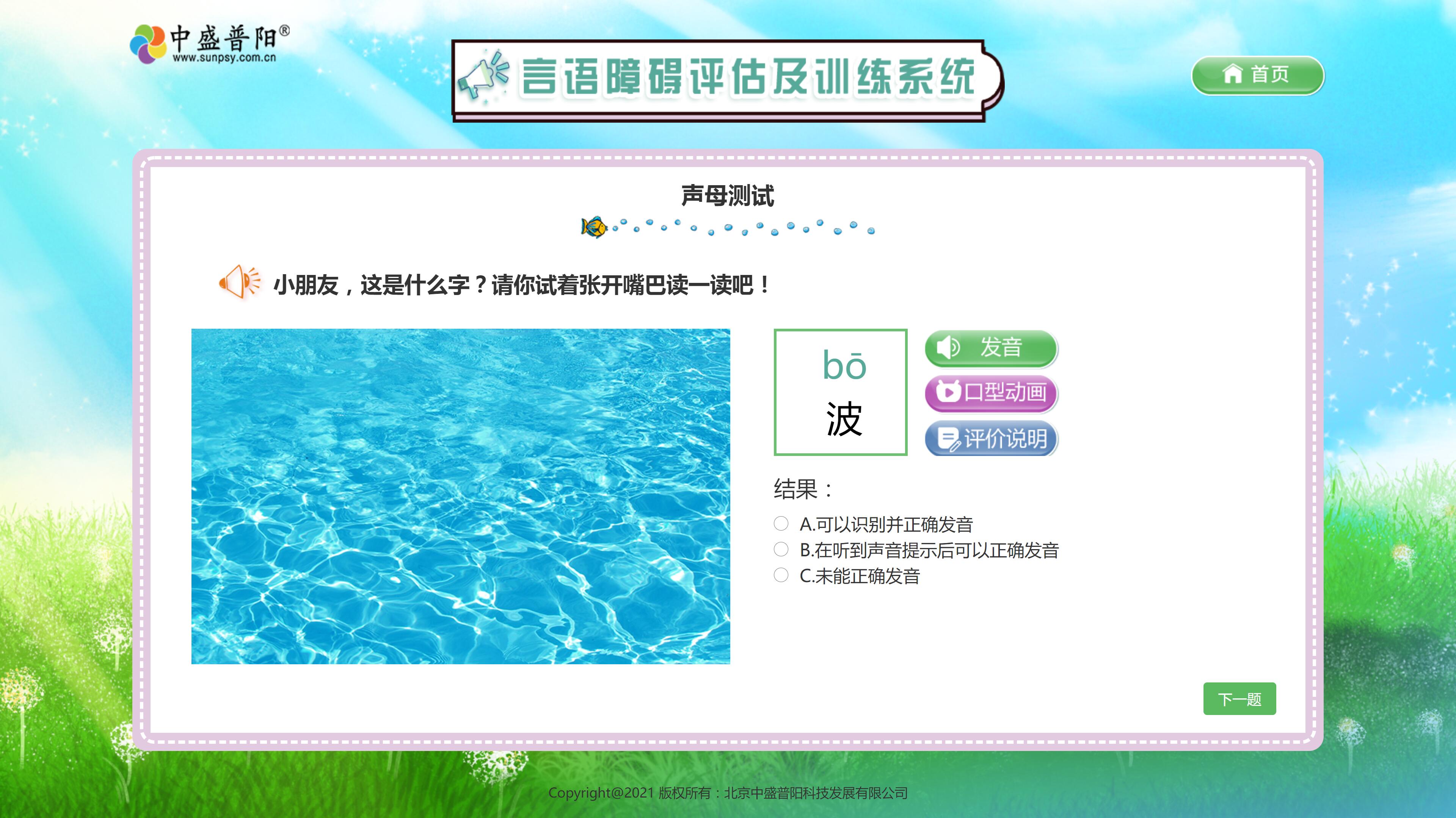 是一款用于言語康復(fù)領(lǐng)域的專業(yè)評估訓(xùn)練設(shè)備。系統(tǒng)包括醫(yī)學(xué)測評、康復(fù)測評、語音訓(xùn)練、語言訓(xùn)練、相關(guān)資源、應(yīng)用工具及實(shí)時言語測量等核心模塊。 系統(tǒng)內(nèi)含醫(yī)學(xué)及康復(fù)兩大評估體系,可實(shí)現(xiàn)對呼吸、發(fā)聲、共鳴、構(gòu)音功能的實(shí)時測量以及開放式單音節(jié)詞、詞語、句子、言語語調(diào)的評估測試。同時具有語音波動態(tài)顯示與測量等功能,可對言語的呼吸、發(fā)聲、共鳴功能進(jìn)行評估并制定合理的矯治方案。