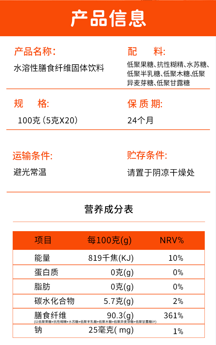 本品富含7種益生元,膳食纖維含量≥90%,膳食纖維有助于維持正常的腸道功能,增加有益菌數(shù)量。本品作為普通食品,不能代替特殊醫(yī)學(xué)用途。