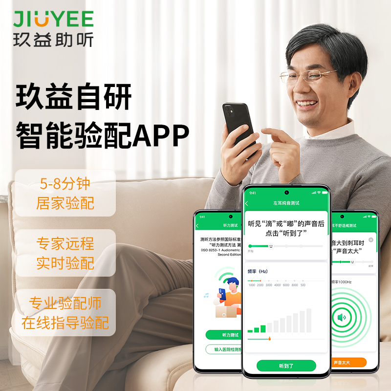 玖益醫(yī)療級智能藍(lán)牙耳背式助聽器(RIC P4 大功率) 適合中重至部分極重度聽損,采用玖益獨(dú)創(chuàng)“三芯系統(tǒng)技術(shù)”、75dB滿檔增益,135dB最大聲壓級 ,64通道WDRC及AI降噪技術(shù)、智能驗(yàn)配APP及遠(yuǎn)程驗(yàn)配、居家5-8分鐘可完成測聽和驗(yàn)配,IP67防水,140小時(shí)長續(xù)航,暢享舒適溝通。