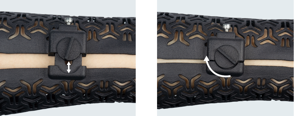 腫脹度調(diào)節(jié)卡扣擁有0-20%靈活調(diào)節(jié)的空間,使得患者在康復過程中,能夠根據(jù)不同腫脹程度來調(diào)節(jié)矯形器的松緊,讓矯形器全程貼敷患肢,提供穩(wěn)固保護。