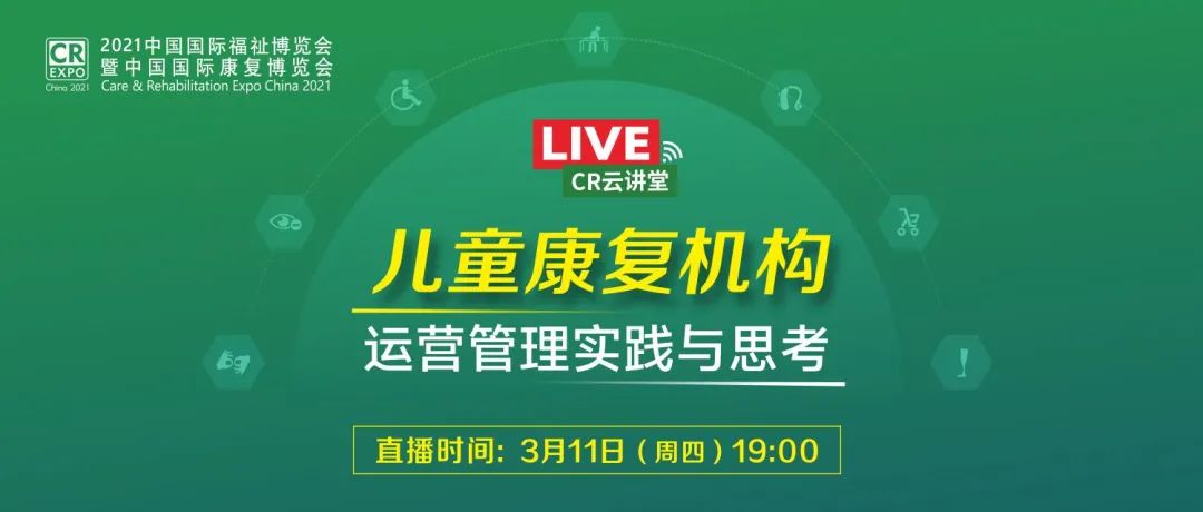 兒童康復(fù)機(jī)構(gòu)如何實(shí)現(xiàn)規(guī)范化運(yùn)營、精細(xì)化管理、專業(yè)化服務(wù)?為了解答這個(gè)問題,中國國際福祉博覽會(huì)暨中國國際康復(fù)博覽會(huì)組委會(huì)將舉辦“兒童康復(fù)機(jī)構(gòu)運(yùn)營管理實(shí)踐與思考”線上講座,歡迎報(bào)名免費(fèi)聽課