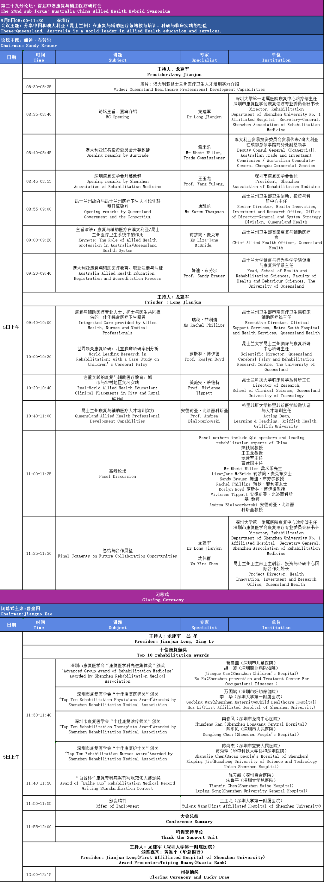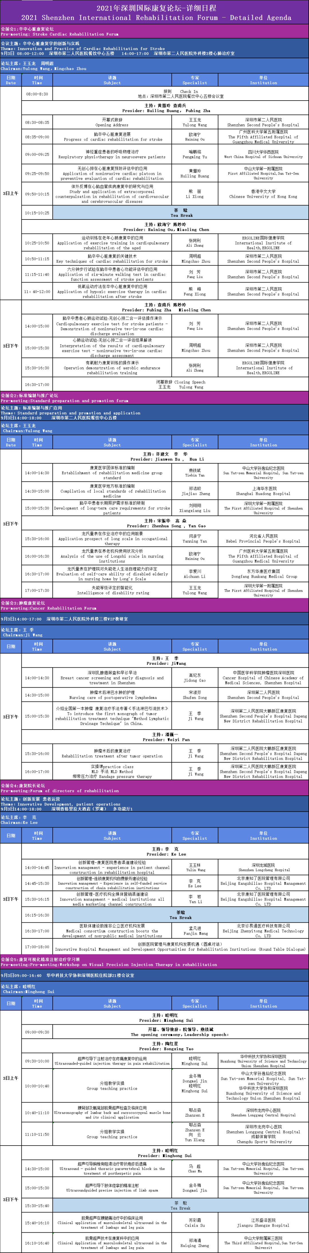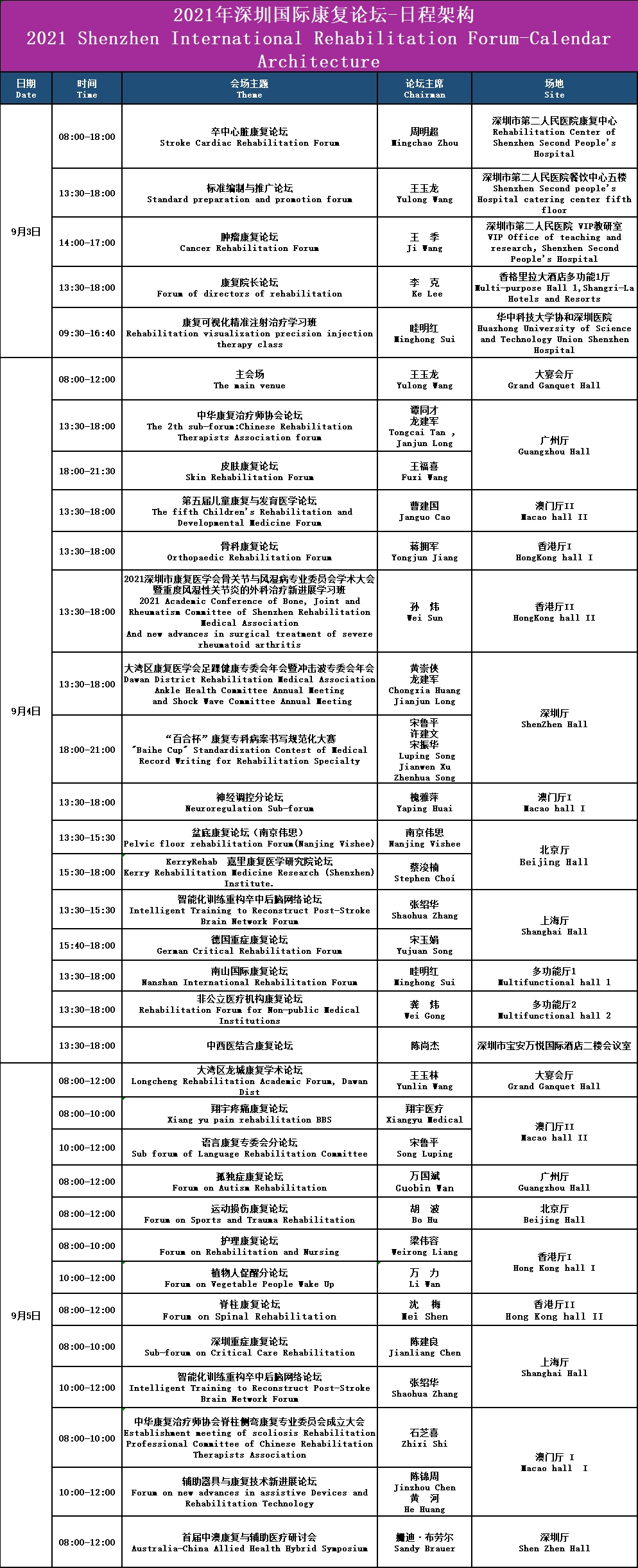“深圳國際康復(fù)論壇”是中國康復(fù)的國際化學(xué)術(shù)交流平臺,每年舉辦一次,會議旨在聚焦康復(fù)領(lǐng)域的研究探索與實踐創(chuàng)新,分享國際康復(fù)的新知識和臨床實踐的新成果,交流和探討現(xiàn)代康復(fù)領(lǐng)域發(fā)展方面的新理念、新做法和新進(jìn)展,提高康復(fù)人才培養(yǎng)質(zhì)量,推動中國康復(fù)醫(yī)學(xué)與國際接軌。