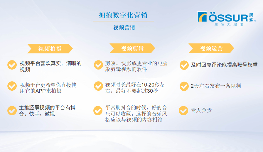 與傳統(tǒng)營銷相比,數(shù)字化營銷有營銷成本低、互動性高、精準(zhǔn)化程度高的優(yōu)點。奧索通過短視頻平臺(抖音、快手)進行數(shù)字化營銷,取得了不錯的成果。