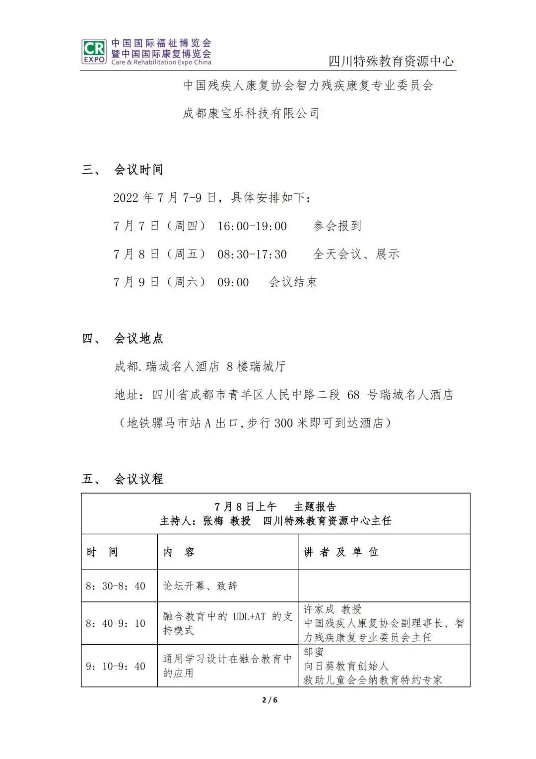 基于此,中國國際福祉博覽會暨中國國際康復博覽會組委會聯(lián)合四川特殊教育資源中心、中國殘疾人康復協(xié)會智力殘疾康復專業(yè)委員會,將于2022年7月8日在成都舉辦“科技輔具支持下的現(xiàn)代特殊教育”研討會,邀請專家學者分享學術和教學研究成果,探討和交流科技輔具在特殊教育領域新理念、新做法和新進展,搭建特殊教育學校、兒童康復機構、兒童康復輔具教具企業(yè)的交流對接平臺。會議詳情如下: