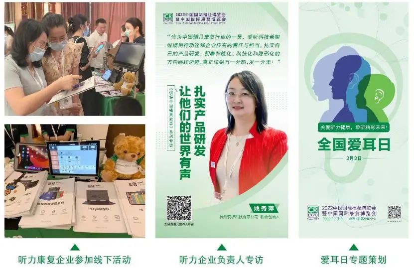 深入聽力康復(fù)行業(yè)一線,展會(huì)在全年度推出一系列相關(guān)活動(dòng),密切聯(lián)系專家學(xué)者及企業(yè)精英,為聽力企業(yè)搭建產(chǎn)、學(xué)、研、用交流平臺(tái)。此外還推出全國愛耳日專題科普,展示助聽器、人工耳蝸、聽力檢測(cè)設(shè)備等解決方案,幫助聽障群體開啟有聲世界;推出線上線下供需采購渠道,助推聽力企業(yè)加快布局市場(chǎng)。