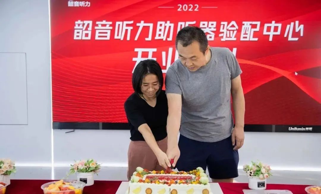 韶音科技CEO陳皞、韶音聽力總經(jīng)理廖風(fēng)云共切蛋糕