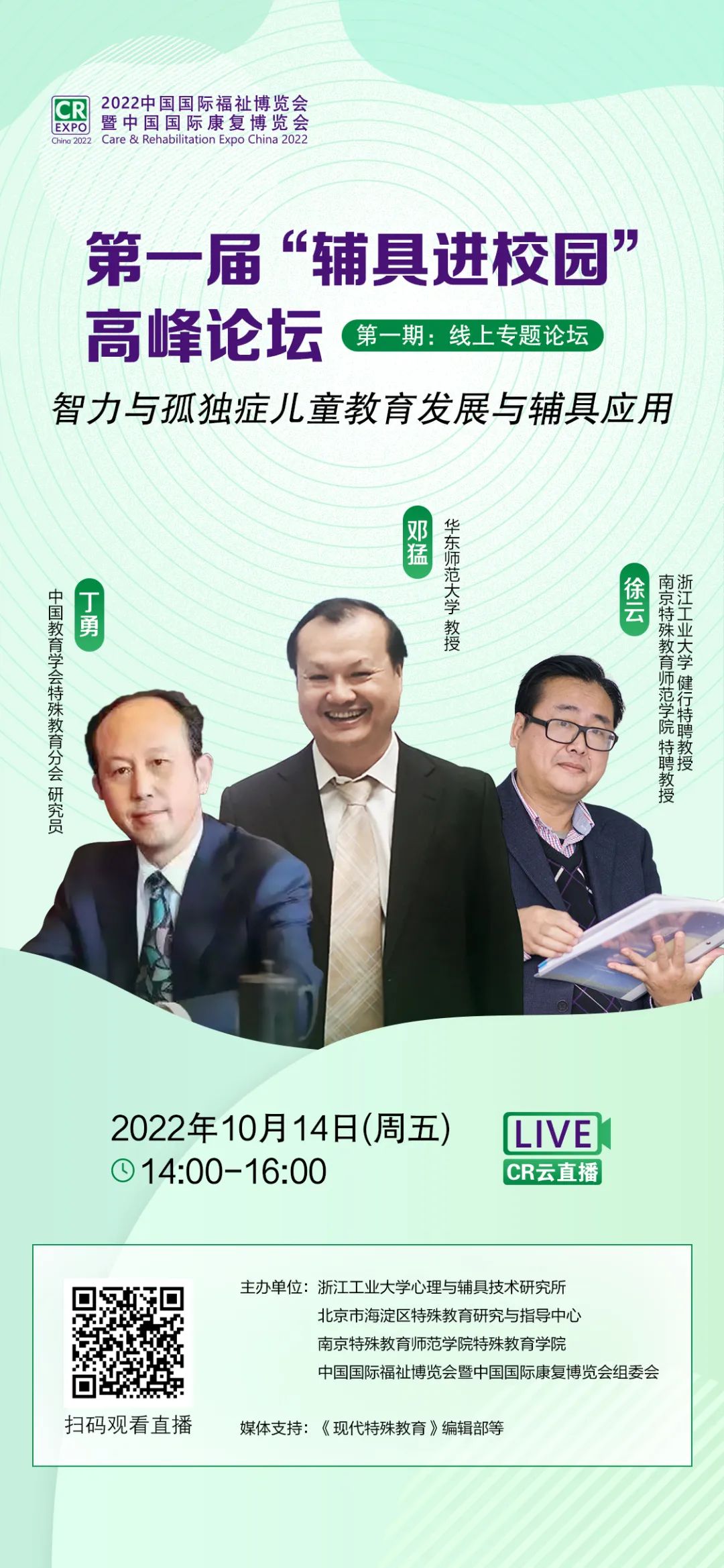10月21日直播 | “輔具進(jìn)校園”高峰論壇第二期開講!共探輔具和特殊兒童教育前沿