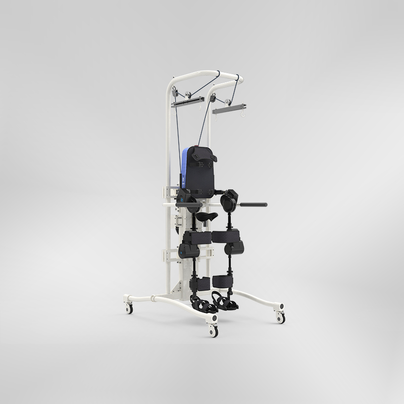 主要是針對(duì)中風(fēng)偏癱患者、骨科術(shù)后患者進(jìn)行下肢康復(fù)訓(xùn)練。這款產(chǎn)品首先采用的仿人體直立狀態(tài)進(jìn)行下肢康復(fù)訓(xùn)練,改變了初期傳統(tǒng)的臥床人工康復(fù);整體采用個(gè)人工智能、被動(dòng)康復(fù)訓(xùn)練的模式,整個(gè)設(shè)備左右腿、髖關(guān)節(jié)、膝關(guān)節(jié)都可以根據(jù)患者情況單獨(dú)進(jìn)行設(shè)置,步幅步頻、康復(fù)訓(xùn)練時(shí)間都可以結(jié)合醫(yī)師指導(dǎo)意見進(jìn)行設(shè)置,而且康復(fù)數(shù)據(jù)可以記錄并從后臺(tái)傳給醫(yī)生,更好的指導(dǎo)康復(fù)訓(xùn)練或研究。另外整體采用吊裝減重設(shè)計(jì),可以滿足不同康復(fù)階段的負(fù)重需求。