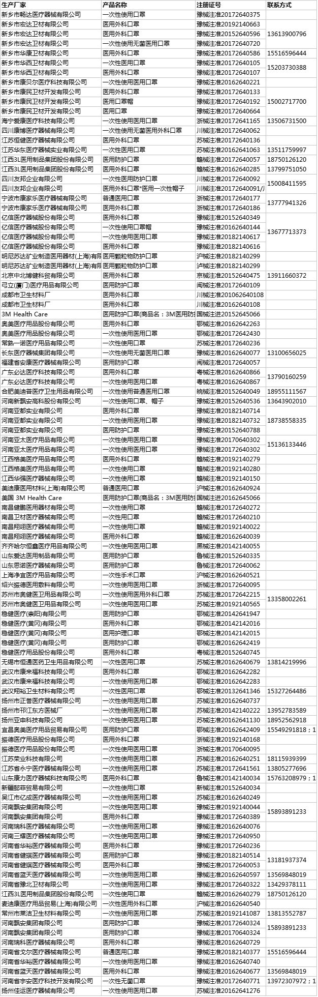 以下為口罩、防護服、消毒液等相關(guān)防護用品生產(chǎn)廠家信息匯總,供有需要的單位聯(lián)絡(luò)參考(*提醒:各采購單位和個人務(wù)必不要以非醫(yī)用口罩等替代,但凡未經(jīng)藥監(jiān)局系統(tǒng)批準的產(chǎn)品,都不具備醫(yī)用資質(zhì)和效果。)