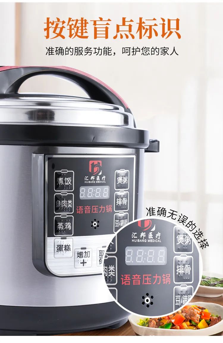 每一個(gè)操作按鍵都具有語音報(bào)讀功能,以及盲文點(diǎn)標(biāo)識(shí)和LED指示燈;具有LED四位數(shù)碼顯示屏,可顯示時(shí)間信息;材質(zhì):不銹鋼外殼,不銹鋼蓋子,食品級(jí)塑料蓋子防護(hù),鋁合金內(nèi)膽;具有一鍵式功能選擇鍵:具有煮飯、煲粥、魚/內(nèi)類、排骨、蒸雞、豆/蹄筋、蛋糕、收汁入味八種功能可選擇。