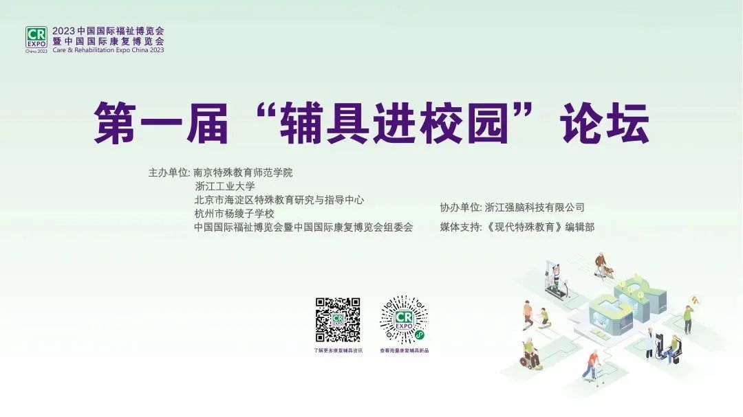 2022年8月9日,中國(guó)殘聯(lián)、教育部聯(lián)合發(fā)布《輔助器具進(jìn)校園工程實(shí)施方案》,該方案明確指出“輔助器具是殘疾人克服障礙、改善功能,提高獨(dú)立生活、學(xué)習(xí)和工作能力的重要手段”。專(zhuān)業(yè)化、現(xiàn)代化的輔助器具成為殘疾兒童進(jìn)入校園、適應(yīng)班級(jí)、融入課堂的強(qiáng)有力保障。為深入貫徹落實(shí)黨中央要求,為殘疾學(xué)生提供科學(xué)的輔助器具設(shè)配和相關(guān)服務(wù),提高殘疾兒童學(xué)習(xí)和生活的便利與有效性,提升融合教育質(zhì)量,推動(dòng)特殊教育高質(zhì)量發(fā)展,第一屆“輔具進(jìn)校園”論壇正式啟動(dòng)。本屆論壇由南京特殊教育師范學(xué)院、浙江工業(yè)大學(xué)、北京市海淀區(qū)特殊教育研究與指導(dǎo)中心、杭州市楊綾子學(xué)校和中國(guó)國(guó)際福祉博覽會(huì)暨中國(guó)國(guó)際康復(fù)博覽會(huì)組委會(huì)聯(lián)合主辦,浙江強(qiáng)腦科技有限公司協(xié)辦,《現(xiàn)代特殊教育》雜志編輯部給予媒體支持。