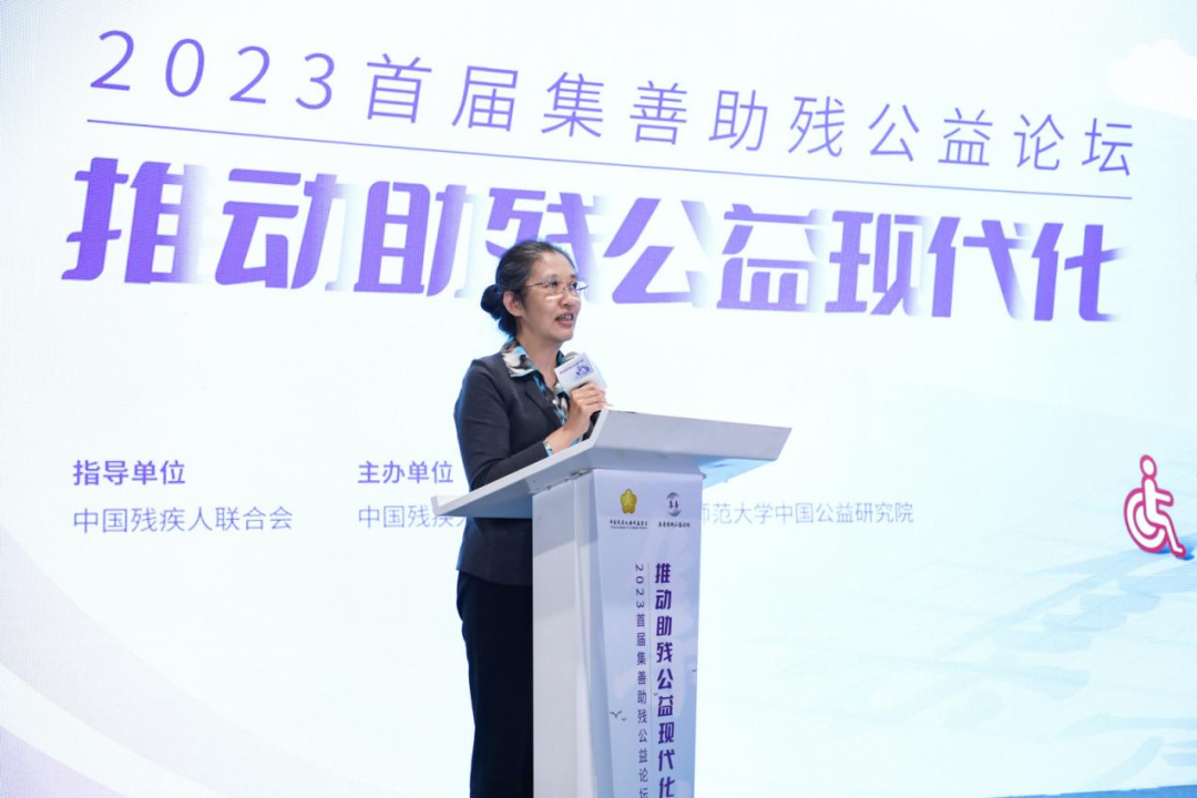 (北京師范大學(xué)中國(guó)公益研究院助理院長(zhǎng)兼殘疾人事業(yè)研究中心主任成緋緋介紹《集善助殘公益優(yōu)秀案例(2023)》)