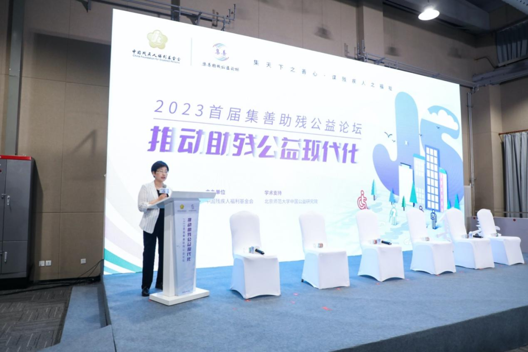 (中國(guó)殘疾人福利基金會(huì)副理事長(zhǎng)兼秘書長(zhǎng)周麗君主持首屆集善助殘公益論壇)