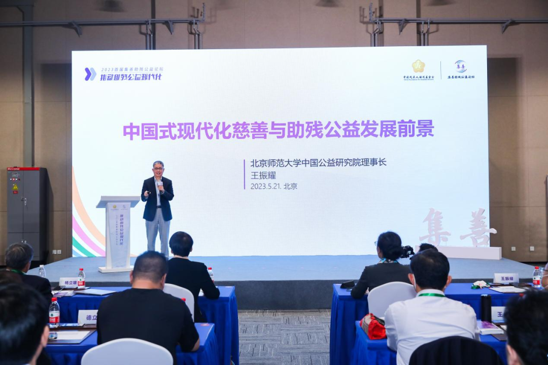 主旨演講環(huán)節(jié),北京師范大學(xué)中國(guó)公益研究院理事長(zhǎng)王振耀以《中國(guó)式現(xiàn)代化慈善與助殘公益發(fā)展前景》為題進(jìn)行主旨演講,他指出,中國(guó)的公益事業(yè)正處于快速發(fā)展的階段,推動(dòng)和實(shí)現(xiàn)助殘公益現(xiàn)代化需要政府、社會(huì)組織、企業(yè)等多方的共同努力。只有通過(guò)各方面的支持和合作,才能夠?qū)崿F(xiàn)助殘公益事業(yè)的現(xiàn)代化和可持續(xù)發(fā)展。