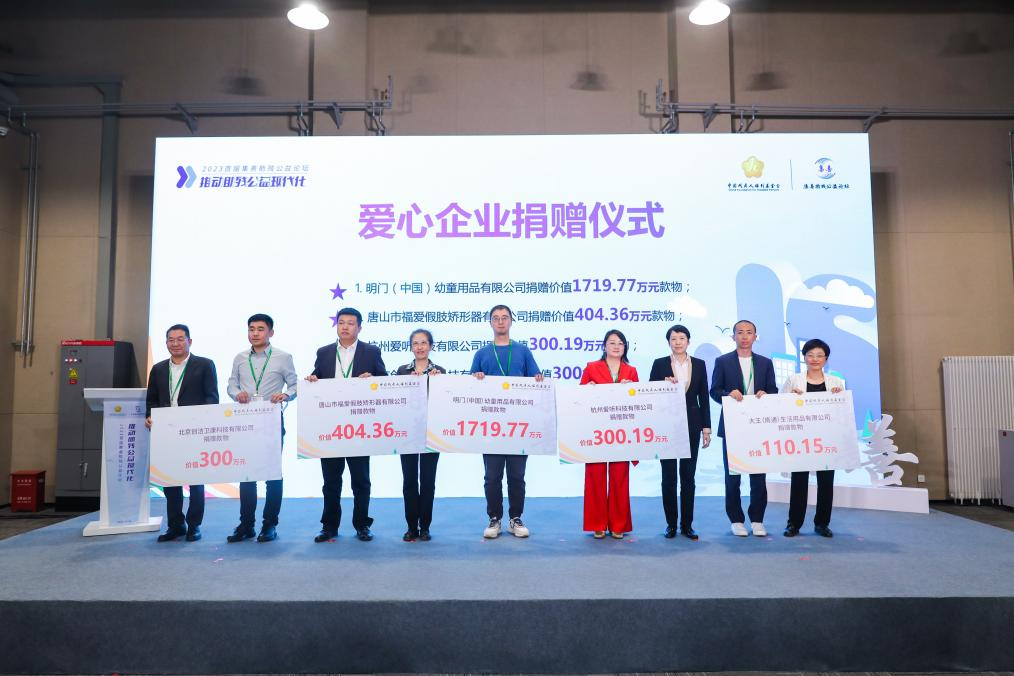 (上三圖為可孚醫(yī)療科技股份有限公司、新矩基金會(huì)、深圳美麗魔方健康投資集團(tuán)、浙江螞蟻公益基金會(huì)、正保遠(yuǎn)程教育、寶泰歐(北京)假肢矯形器商業(yè)有限責(zé)任公司、上海頌協(xié)醫(yī)療器械有限公司、如新集團(tuán)、浙江諾爾康神經(jīng)電子科技股份有限公司、亞瑞科爾國(guó)際廣告?zhèn)髅剑ū本┯邢薰?、大王(南通)生活用品有限公司、杭州愛聽科技有限公司、明門(中國(guó))幼童用品有限公司、唐山市福愛假肢矯形器有限公司、北京創(chuàng)潔衛(wèi)康科技有限公司等15家愛心企業(yè)和機(jī)構(gòu)向中國(guó)殘疾人福利基金會(huì)捐贈(zèng)了總價(jià)值1.07億元的款物)