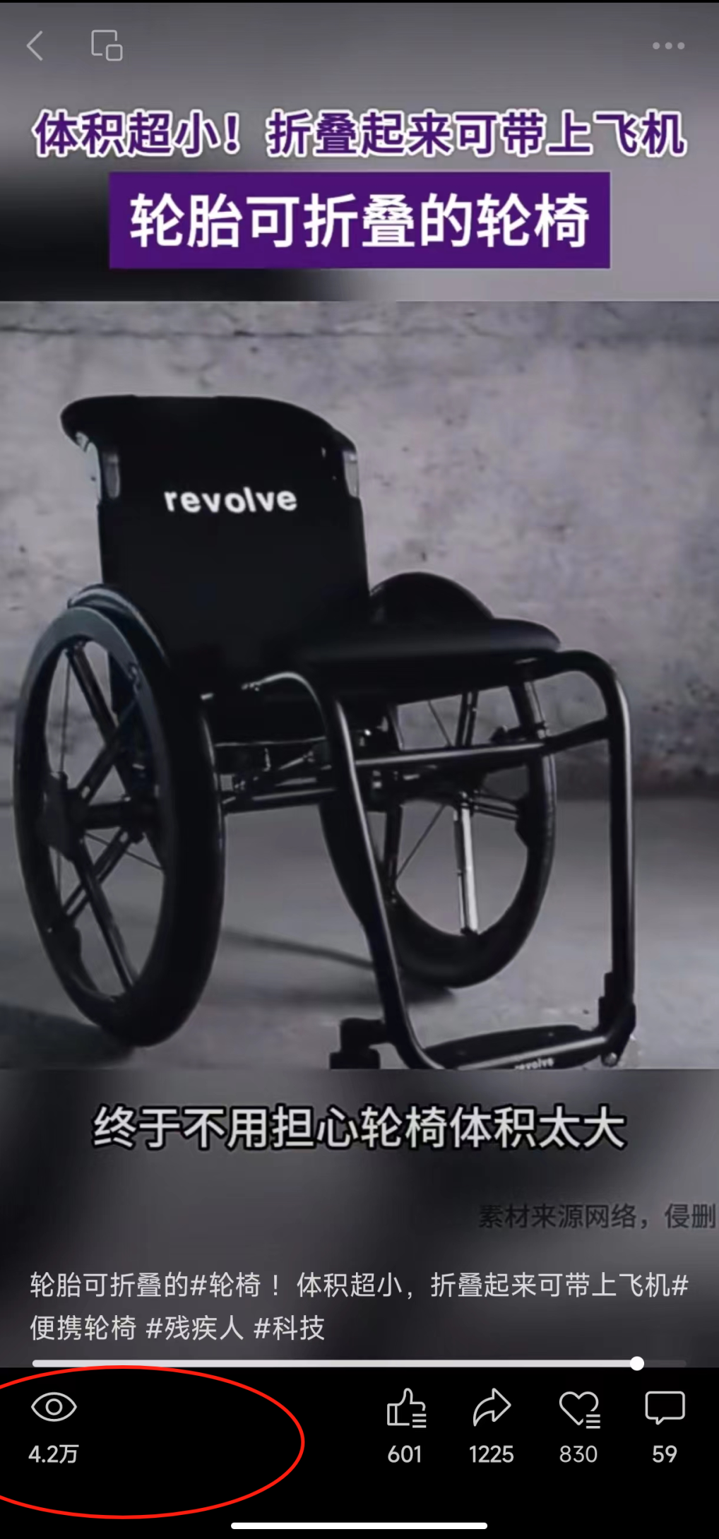 產(chǎn)品案例:近期,折疊輪椅、福祉車(chē)等新產(chǎn)品在福祉視頻平臺(tái)發(fā)布后,產(chǎn)品類(lèi)目的播放量直線(xiàn)提升,討論度火熱,短時(shí)間內(nèi)收獲20+來(lái)自B端、C端的詢(xún)價(jià)。