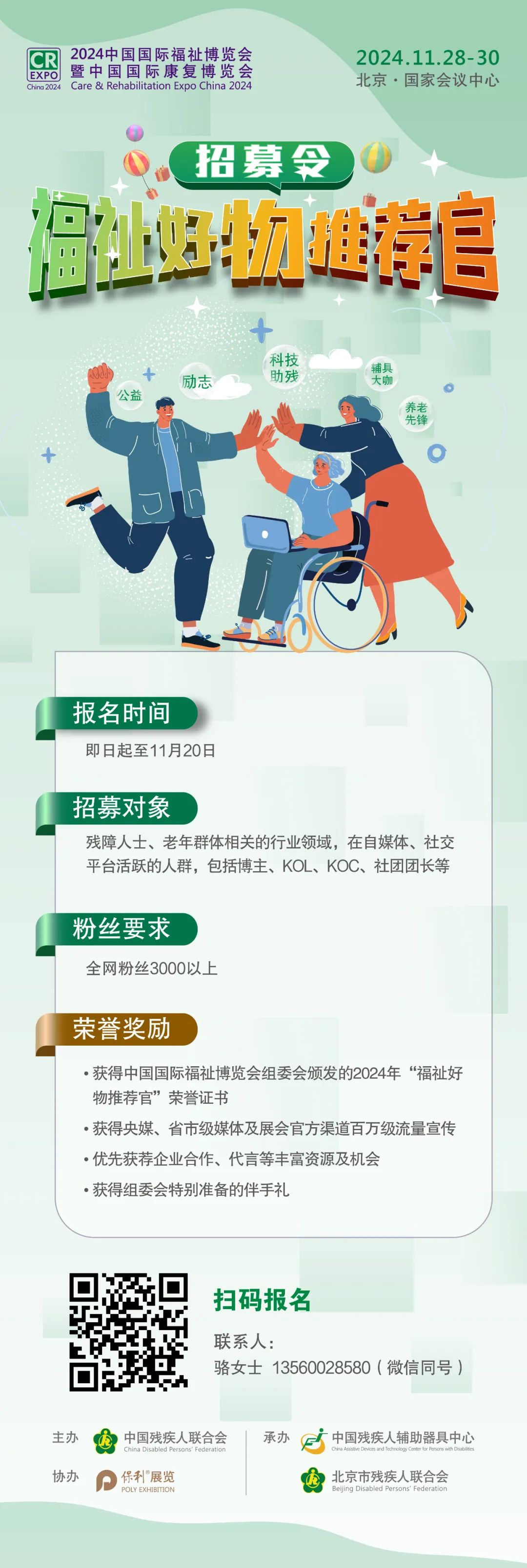 招募范圍:殘障人士、老年群體相關(guān)領(lǐng)域,如助行移動(dòng)、老年輔具、假肢及矯形器、低視力/聽覺言語(yǔ)康復(fù)、無(wú)障礙生活、特殊教育、兒童康復(fù)等