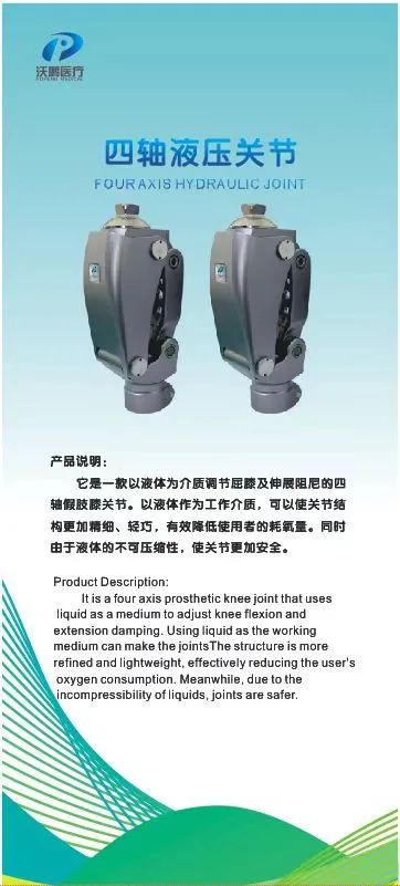 它是一款以液體為介質(zhì)調(diào)節(jié)屈膝及伸展阻尼的四軸假肢膝關(guān)節(jié)。以液體作為工作介質(zhì),可以使關(guān)節(jié)結(jié)構(gòu)更加精細(xì)、輕巧,有效降低使用者的耗氣量。同時(shí)由于液體的不可壓縮性,使關(guān)節(jié)更加安全。