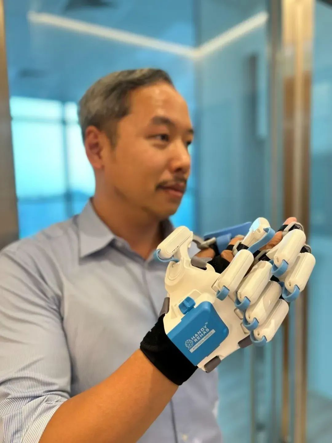 HANDYREHAB HandyGlove是一款智能機(jī)器人手套系統(tǒng),已獲得專(zhuān)利并經(jīng)過(guò)臨床驗(yàn)證,可幫助中風(fēng)康復(fù)患者恢復(fù)高達(dá)90%的完全運(yùn)動(dòng)控制能力。這是一款便攜式輔助設(shè)備,能夠幫助殘疾人士完成日常任務(wù),例如拿起一杯水。