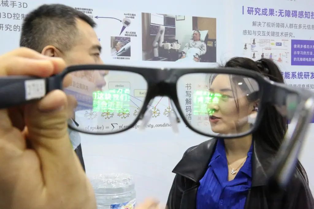 圖為博覽會(huì)現(xiàn)場(chǎng)展出的AR字幕眼鏡